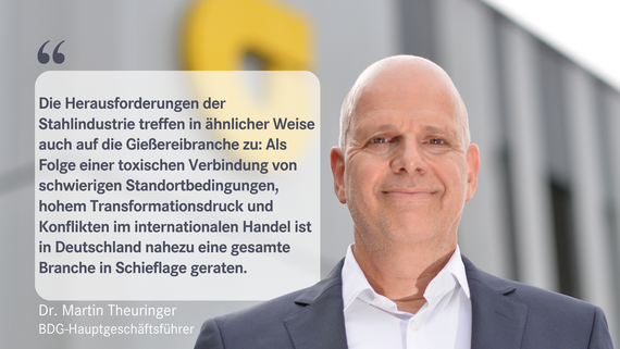 Deutschlands energieintensive, mittelständische Gießerei-Industrie ist im Bundesverband der Deutschen Gießerei-Industrie (BDG) organisiert. Der BDG vertritt die Interessen der Branche in technischen, wirtschaftspolitischen und weiteren Themen. Er ist eng vernetzt anderen Industrieverbänden wie dem BDI. Der Verband hat seinen Sitz im Haus der Gießerei-Industrie (HDGI) in Düsseldorf. Darin befinden sich außerdem die Tochter BDG-Service mit der VDG Akademie, der Personenverband VDG (Verein Deutscher Gießerei-Fachleute), die Forschungsvereinigung Gießerei-Industrie (FVG), der Verband Deutscher Druckgießereien (VDD) sowie der europäische Verband EFF (vormals CAEF).