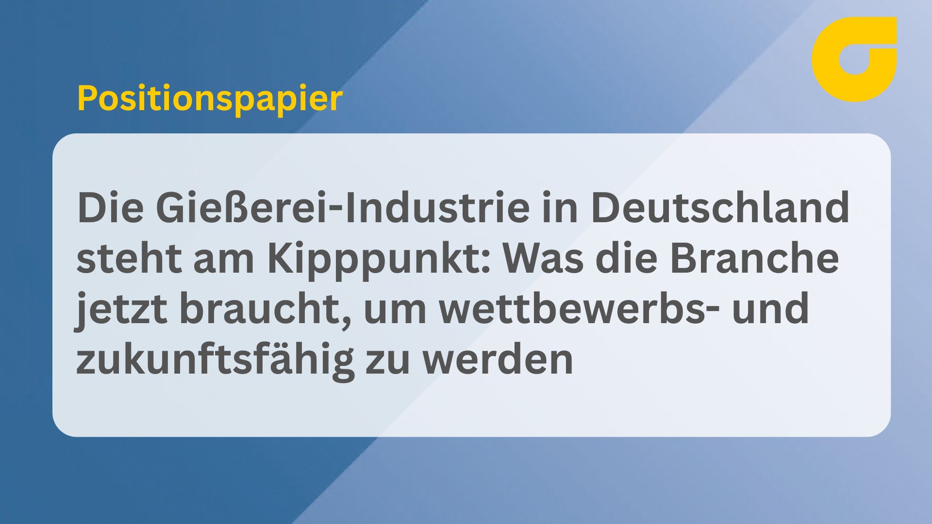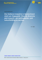 Mit dem Positionspapier „Gießerei-Industrie am Kipppunkt“ formuliert der BDG klare Erwartungen an die Industriepolitik von Bund und Ländern. Er zeigt auf, welche Maßnahmen jetzt notwendig sind, um Wettbewerbsfähigkeit, technologische Souveränität und die Transformation zur Klimaneutralität zu sichern.
